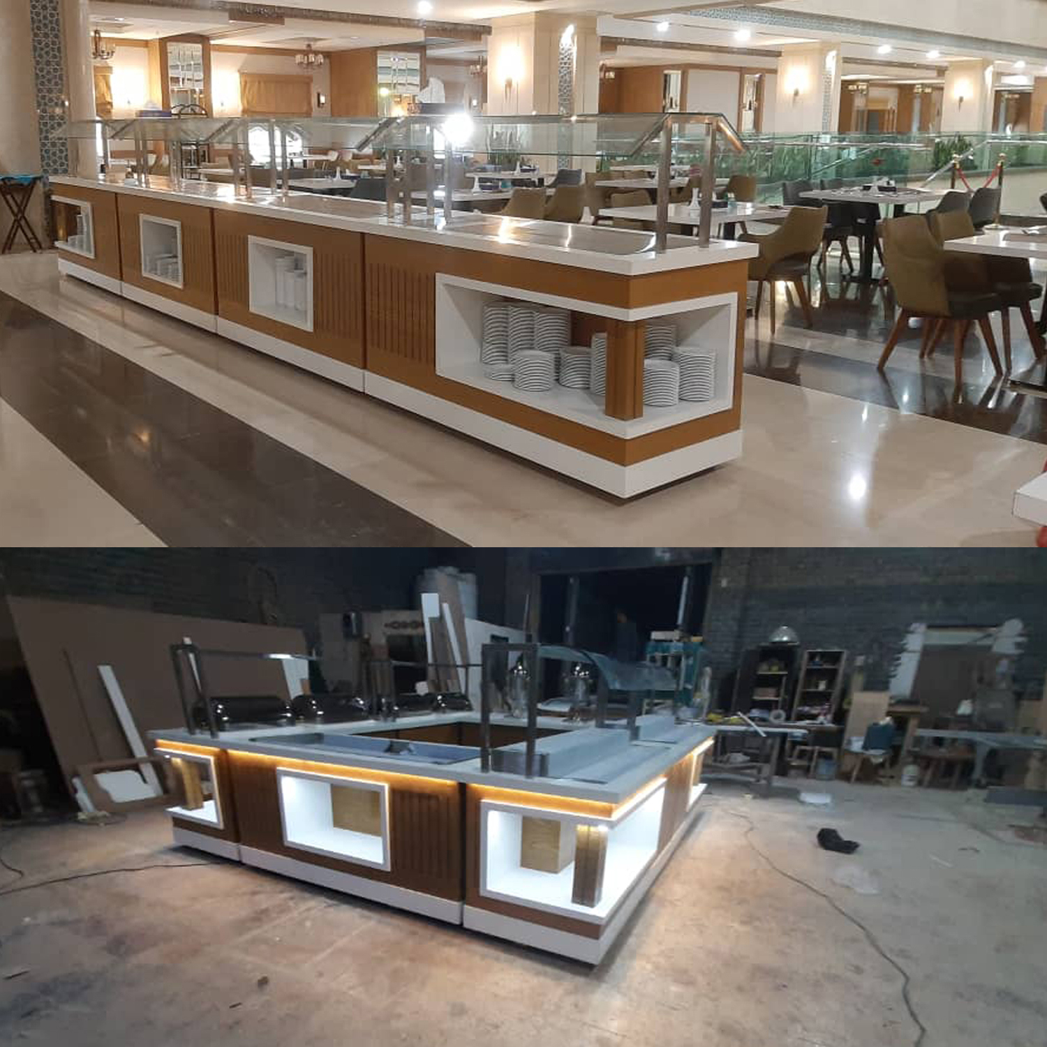 <p>سالاد بار ساخته شده از فریم چوب راش</p> <p>بدنه ام دی اف</p> <p>رویه کره ای هانکس </p> <p>رنگ پلی یورتان</p> <p>دارای چرخ </p> <p> </p>